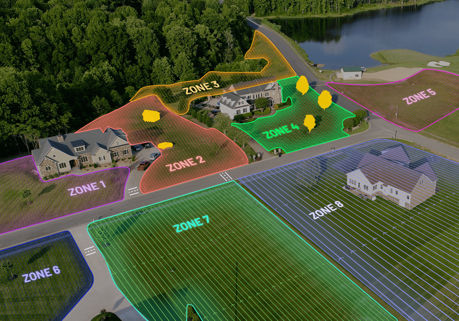 Gérez facilement 50 zones de tonte, y compris les avant et arrière-cours, les bords de routes et les zones interdites comme les piscines et les parterres de fleurs. Vous pouvez facilement restaurer la carte d'origine avec un seul bouton, éliminant ainsi la nécessité de la redessiner.