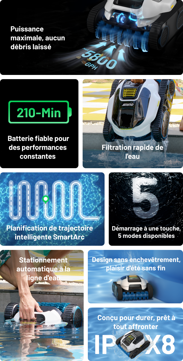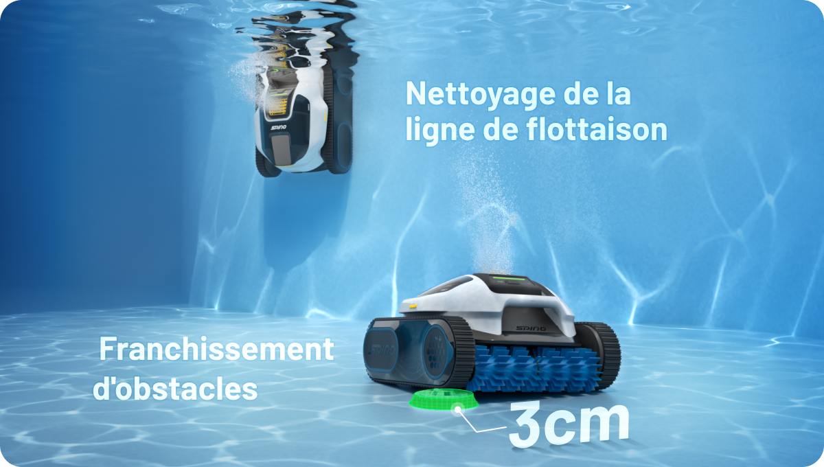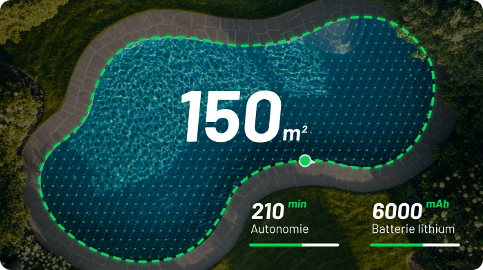 Nettoyage ciblé du fond avec une autonomie allant jusqu’à 210 minutes.