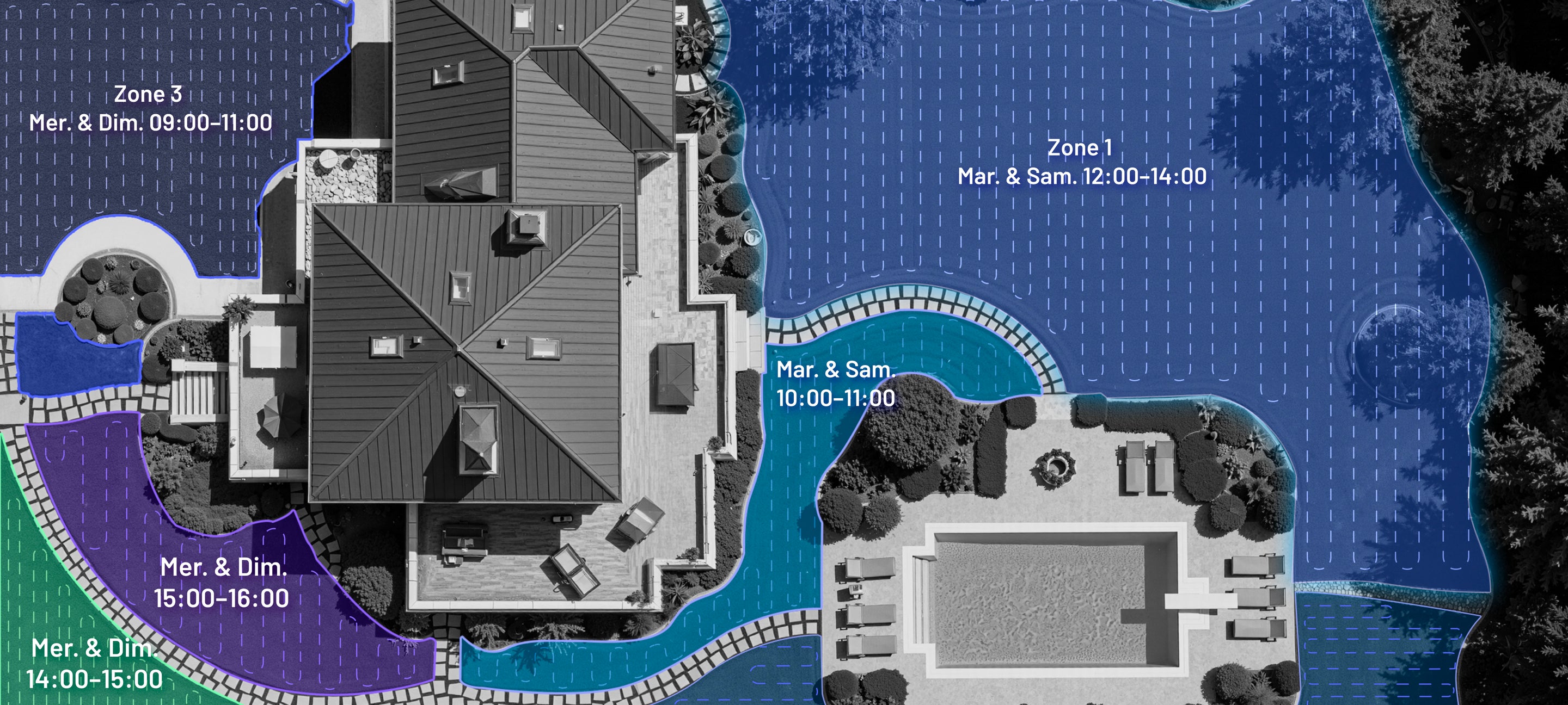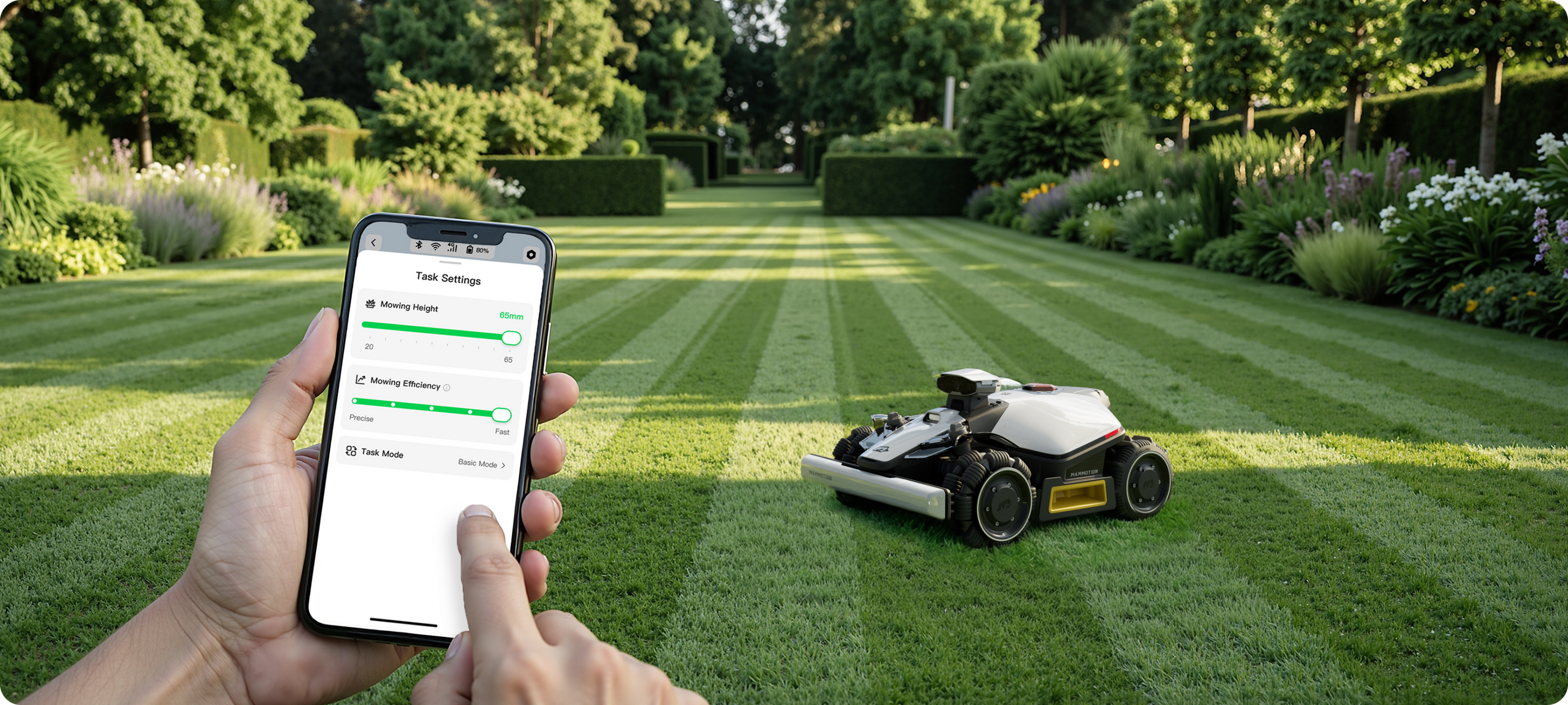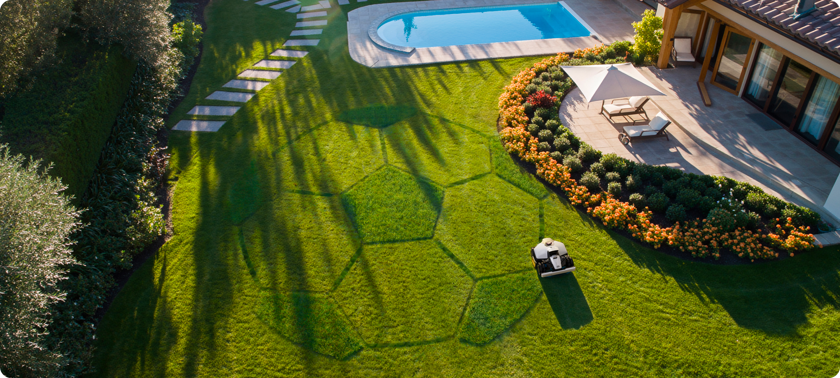 L’IA analyse chaque zone pour déterminer l’itinéraire de tonte le plus efficace, réduisant les chevauchements et gagnant du temps.